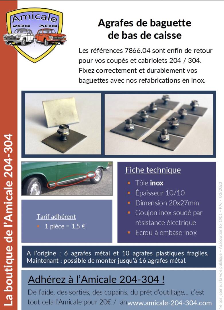 Agrafes de baguettes de bas de caisse pour coupé et cabriolet 204 & 3042017-07-272026-02-25http://www.amicale-204-304.com/wp-content/uploads/logo_amicale_200web.pngAmicale 204-304https://www.amicale-204-304.com/wp-content/uploads/agrafe-baguettes-amicale-204.jpg200px200px